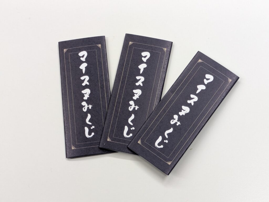 「えっ、全部のおみくじに直筆でメッセージを!?……それはすごすぎます!」 おみくじの仕様を伺った時、思わずそう声を上げてしまいました。 こちらの「マイスヌみくじ」は、5人組の男性アイドルグループ・マイスヌーズさまの事例です。イベント会場で配布されたこのおみくじには、制作側の私たちが驚くほどの、熱い想いが込められていました… -