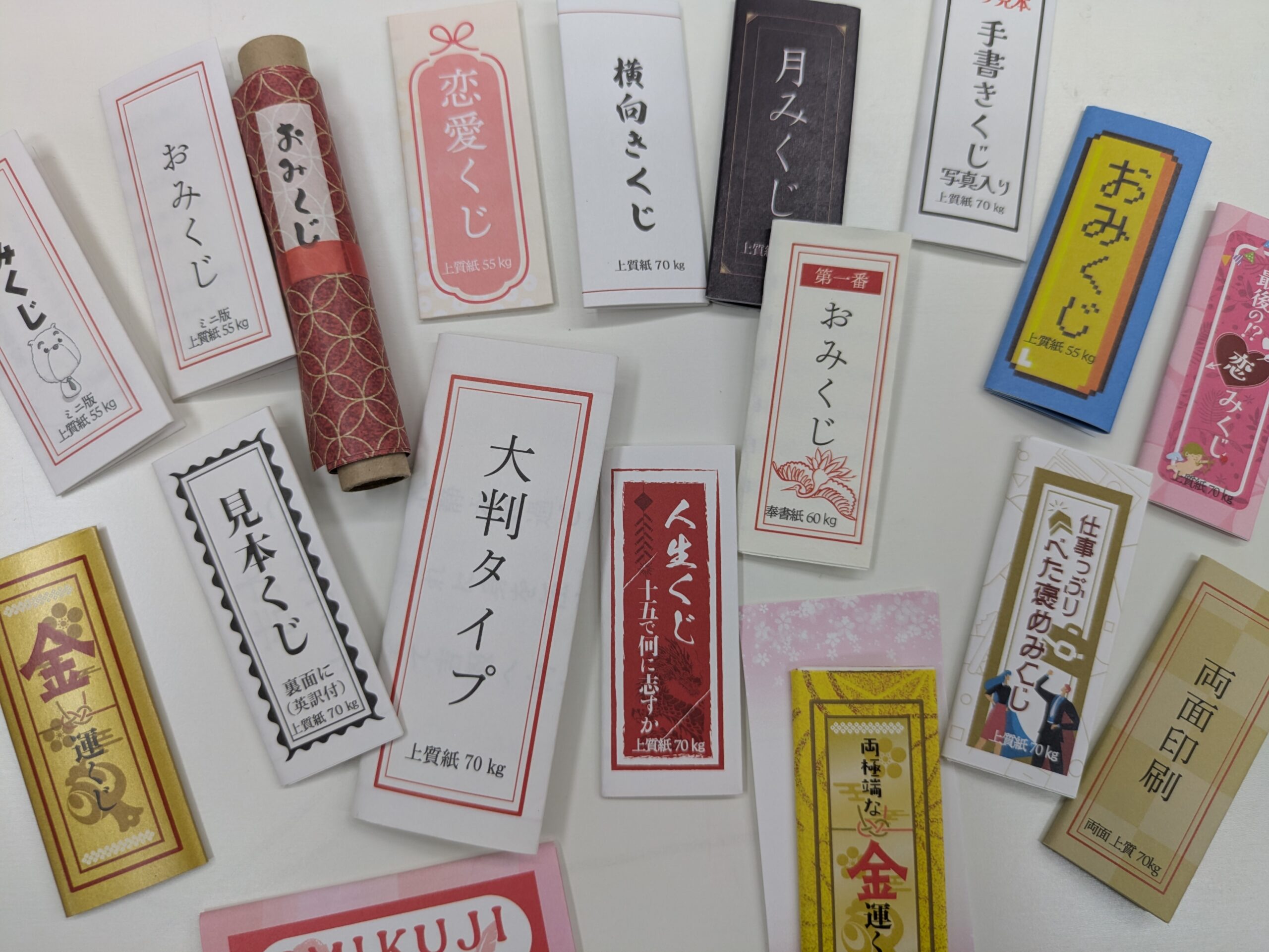 制作部数など仕様によって単価の変動はありますが、10000部を作るとおみくじの単価は20円を切ります(仕様によっては16.2円)。1000部つくる場合は単価40円程です。※仕様によって変動がありますので詳しくはご相談下さいませ。